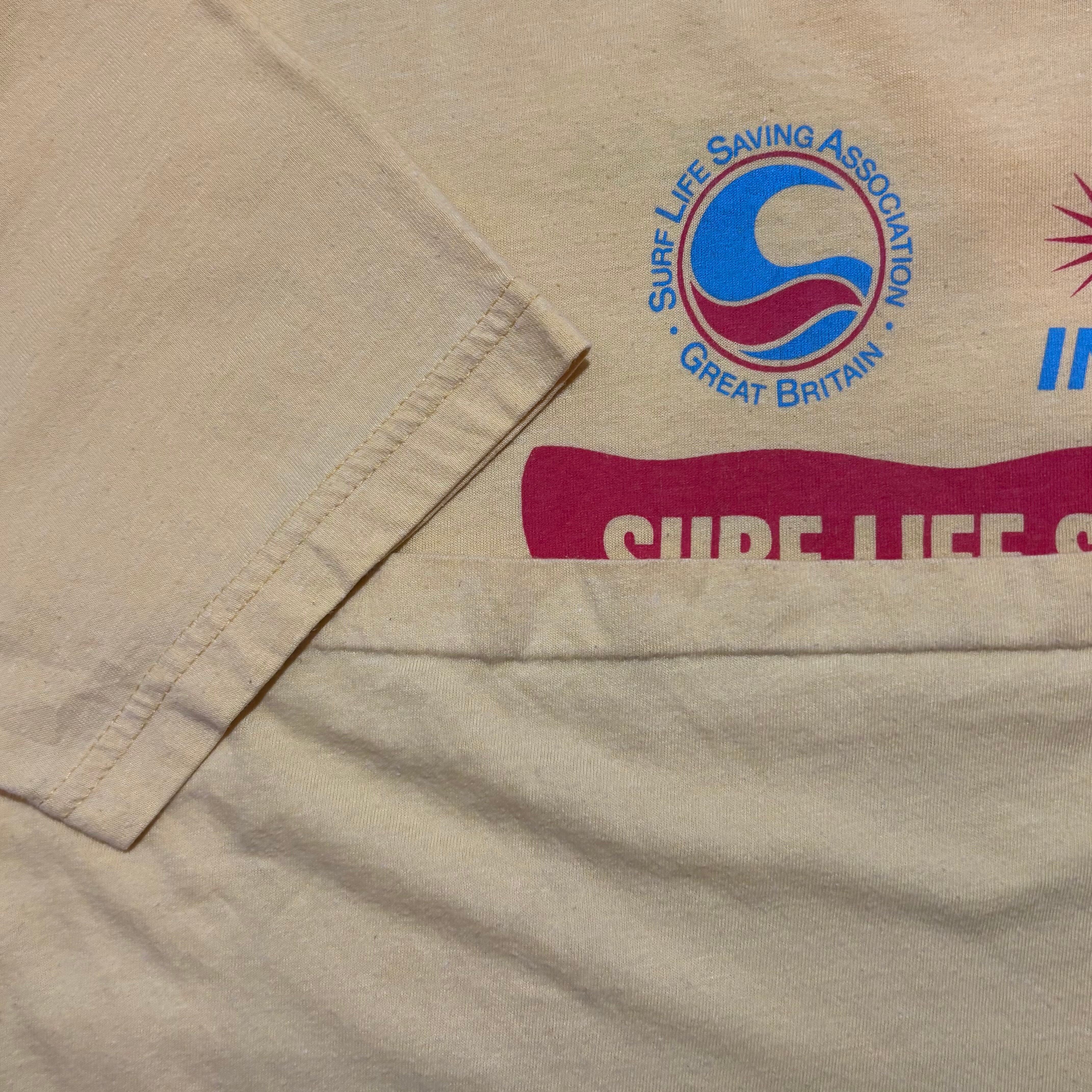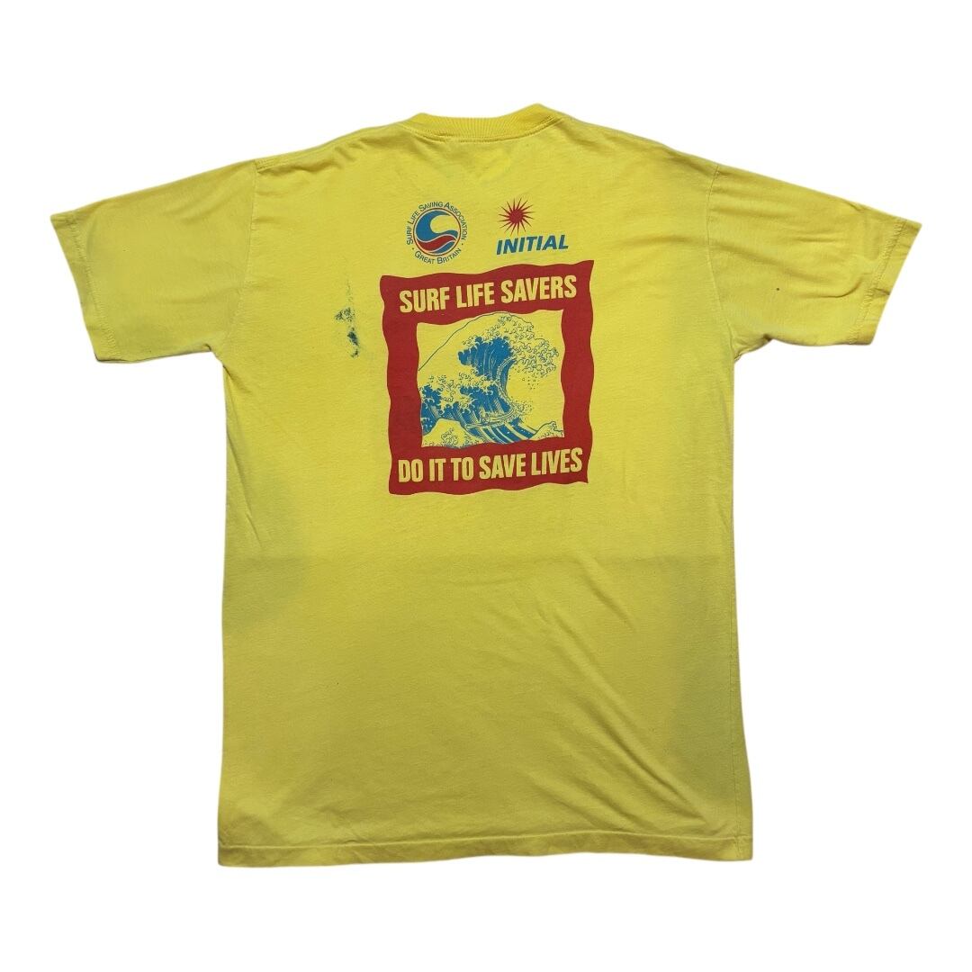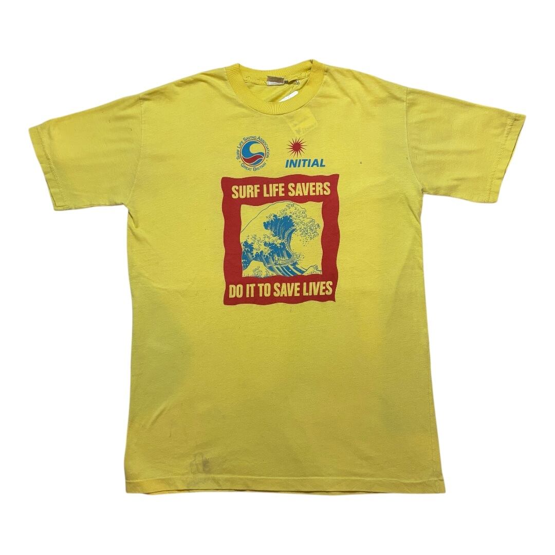 【D11】〜 90s sportswear SURF LIFE SAVERS HOKUSAI T-shirt yellow X-large / 1980年代 1990年代 スポーツウェア サーフィン 葛飾北斎 Tシャツ 黄色 XLサイズ