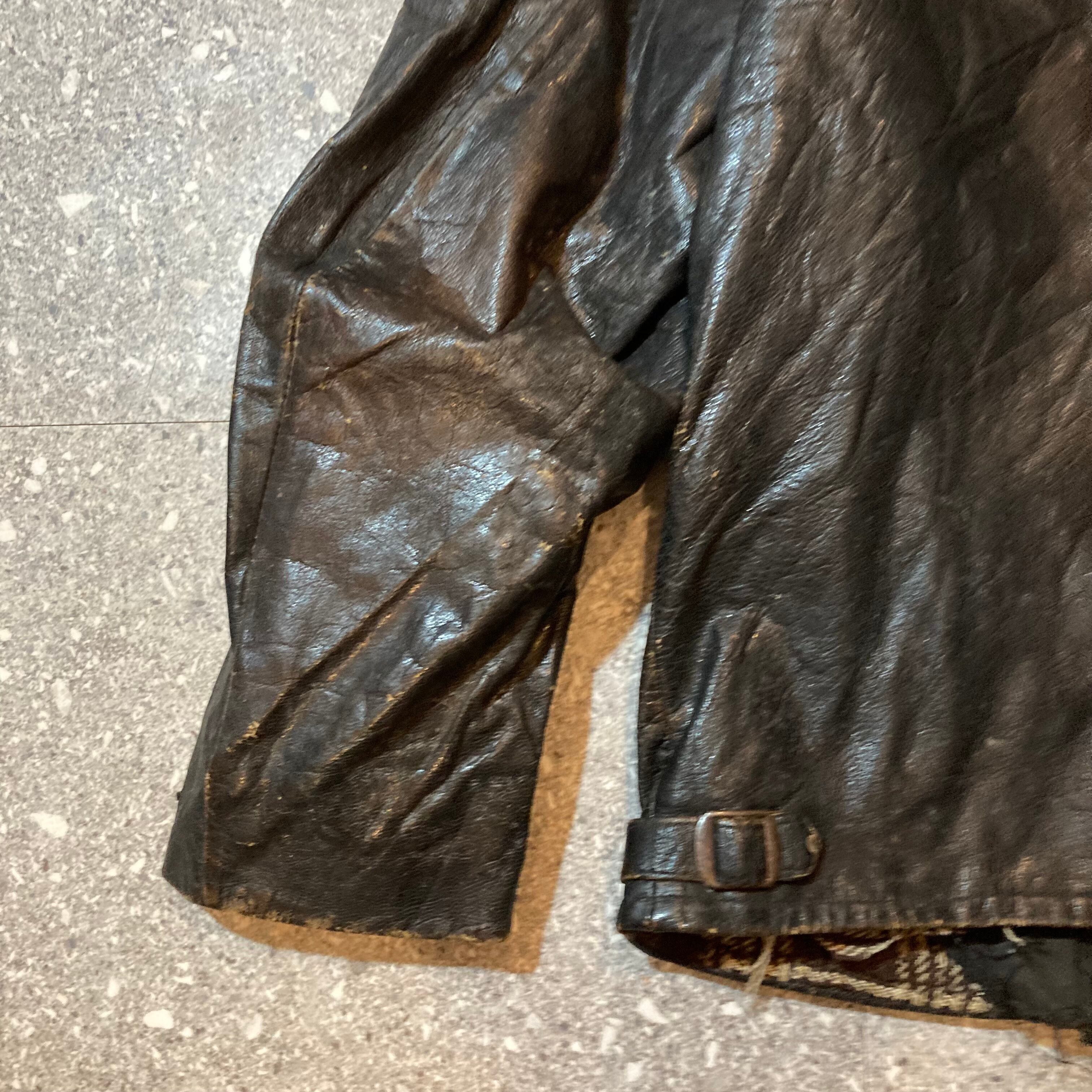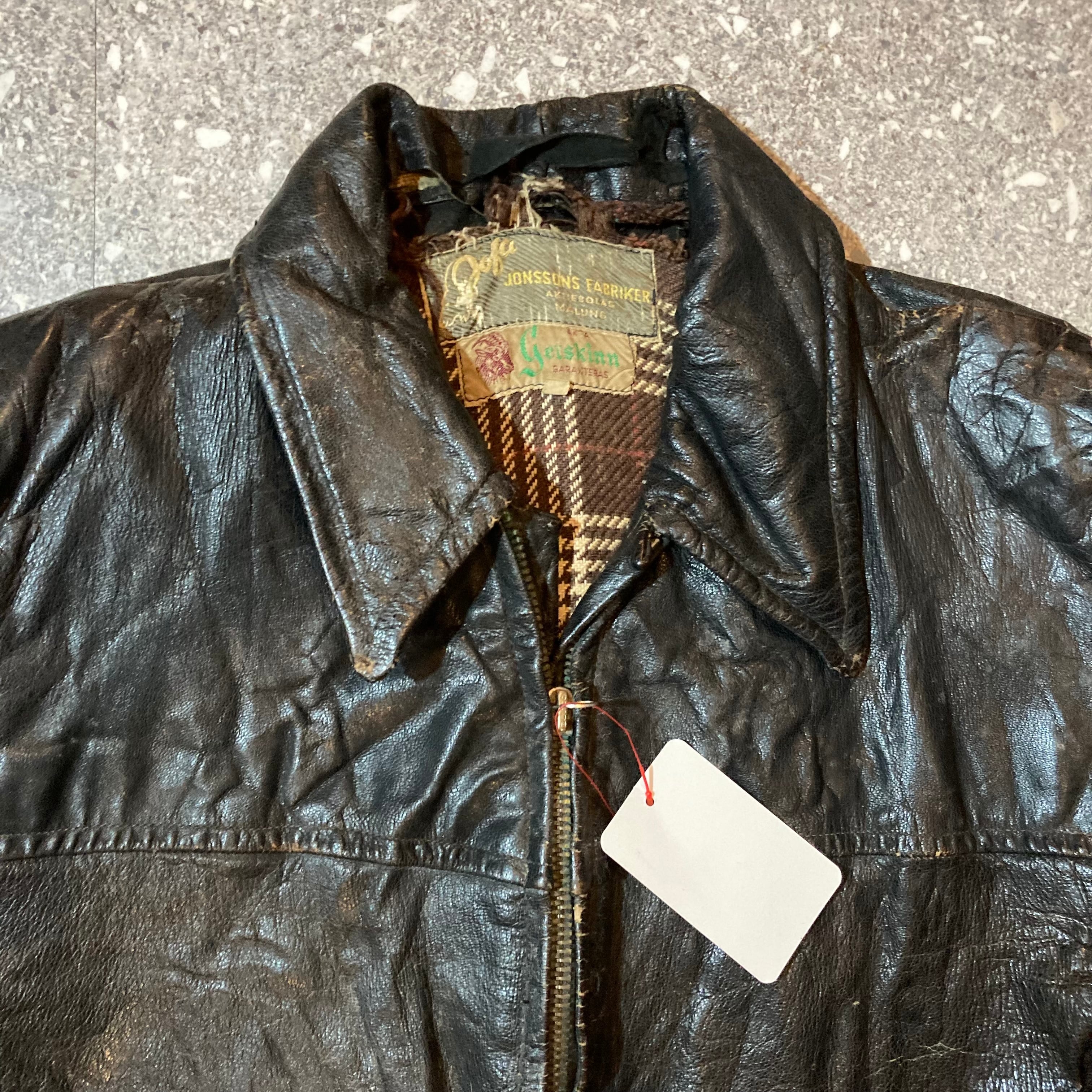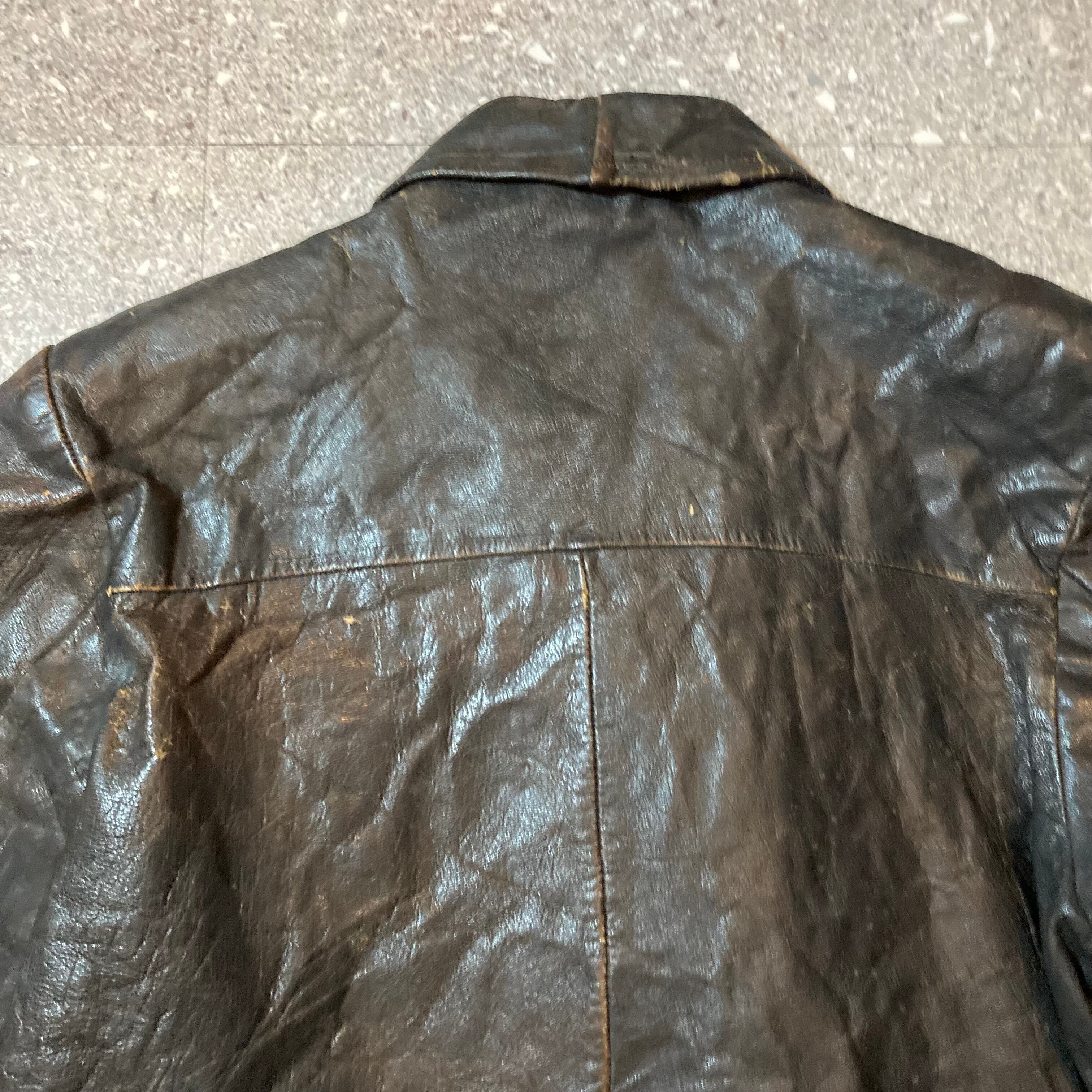 【トップス】vintage leather jacket / ビンテージ レザー ジャケット 茶芯 短丈 襟付きジップ