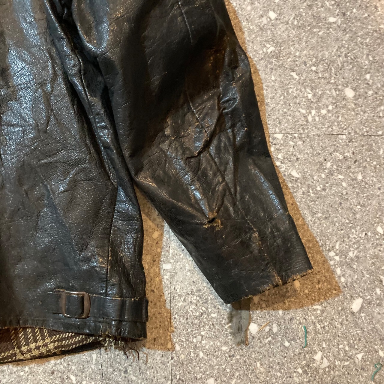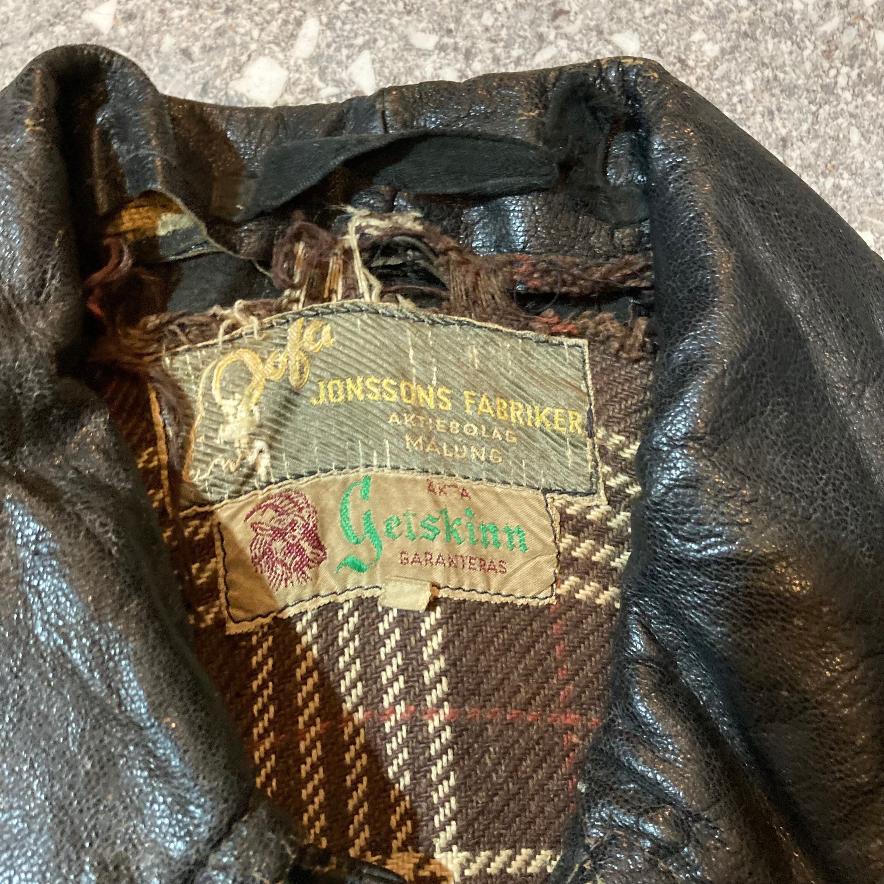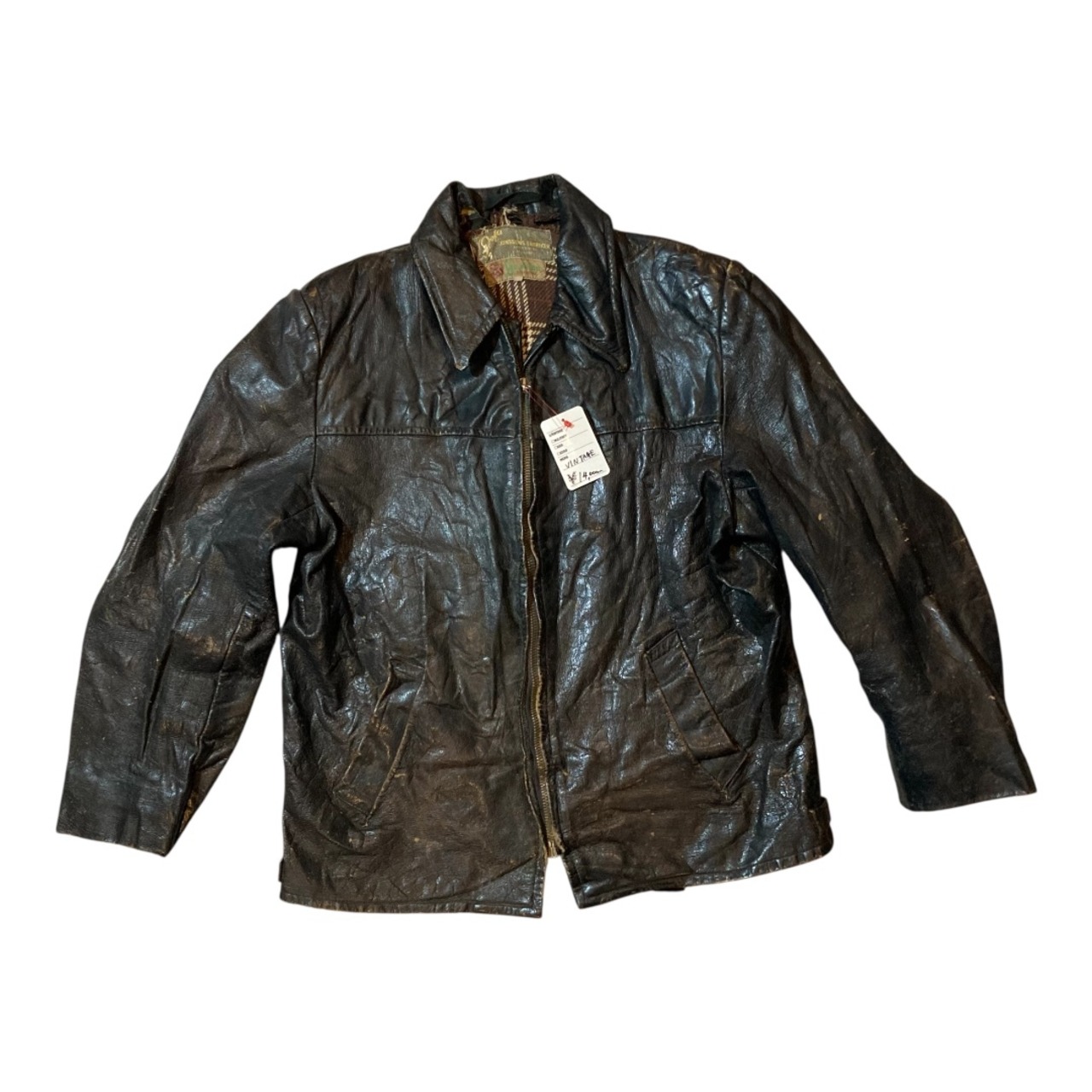 【トップス】vintage leather jacket / ビンテージ レザー ジャケット 茶芯 短丈 襟付きジップ