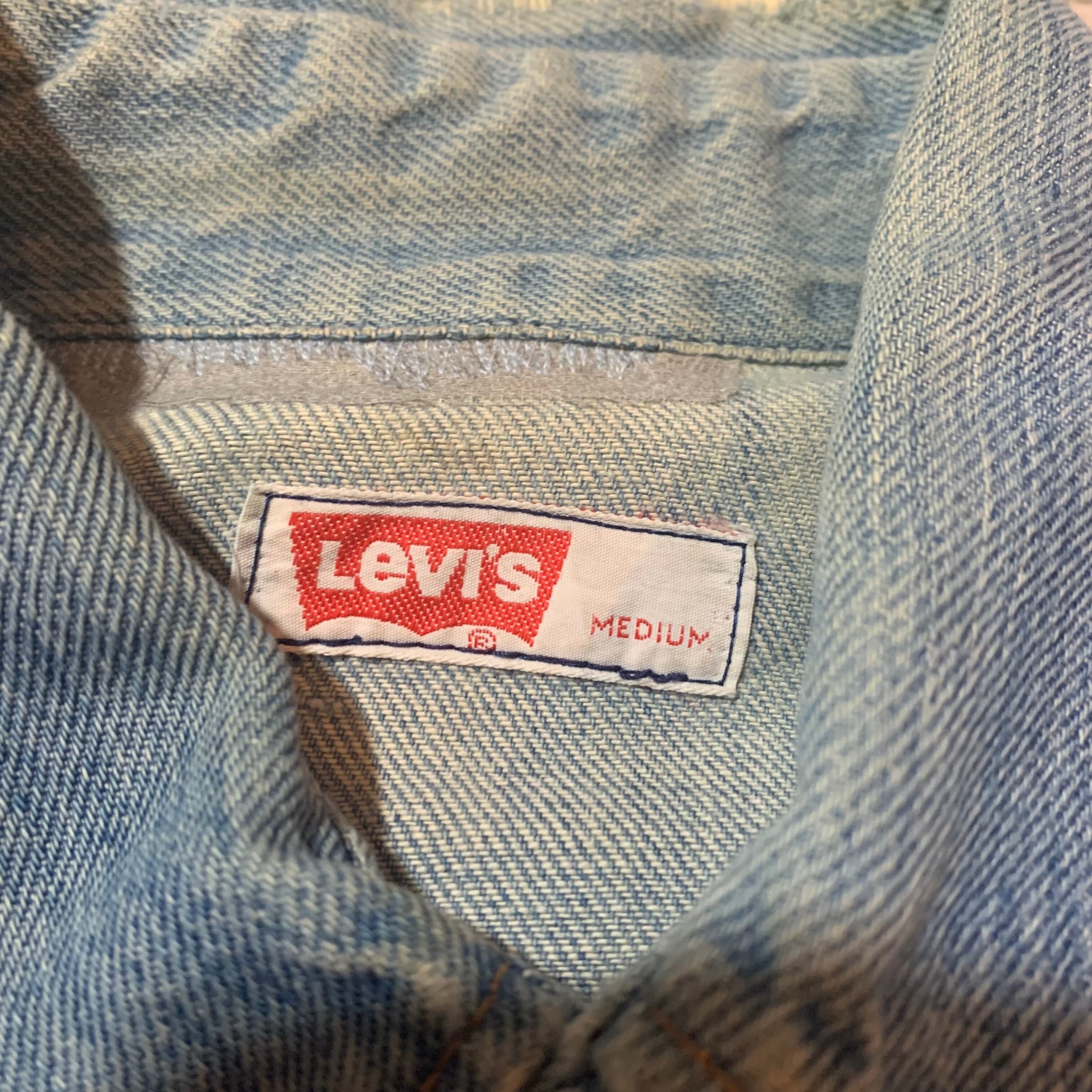 【D436】70s Levis denim shirt size M/ 70年代製 リーバイス デニムシャツ サイズM ボロ フェード