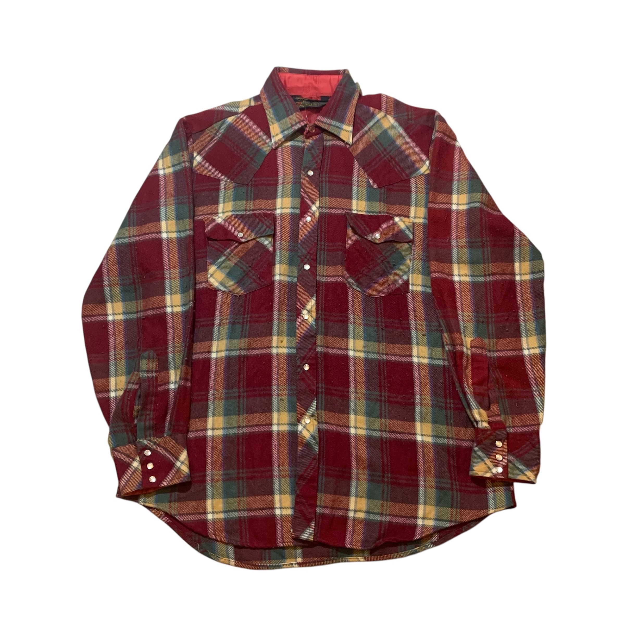 【D560】K-mart acrylic check pattern western flannel l/s shirt/ケーマート アクリル チェック ウェスタン フランネルシャツ 長袖シャツ