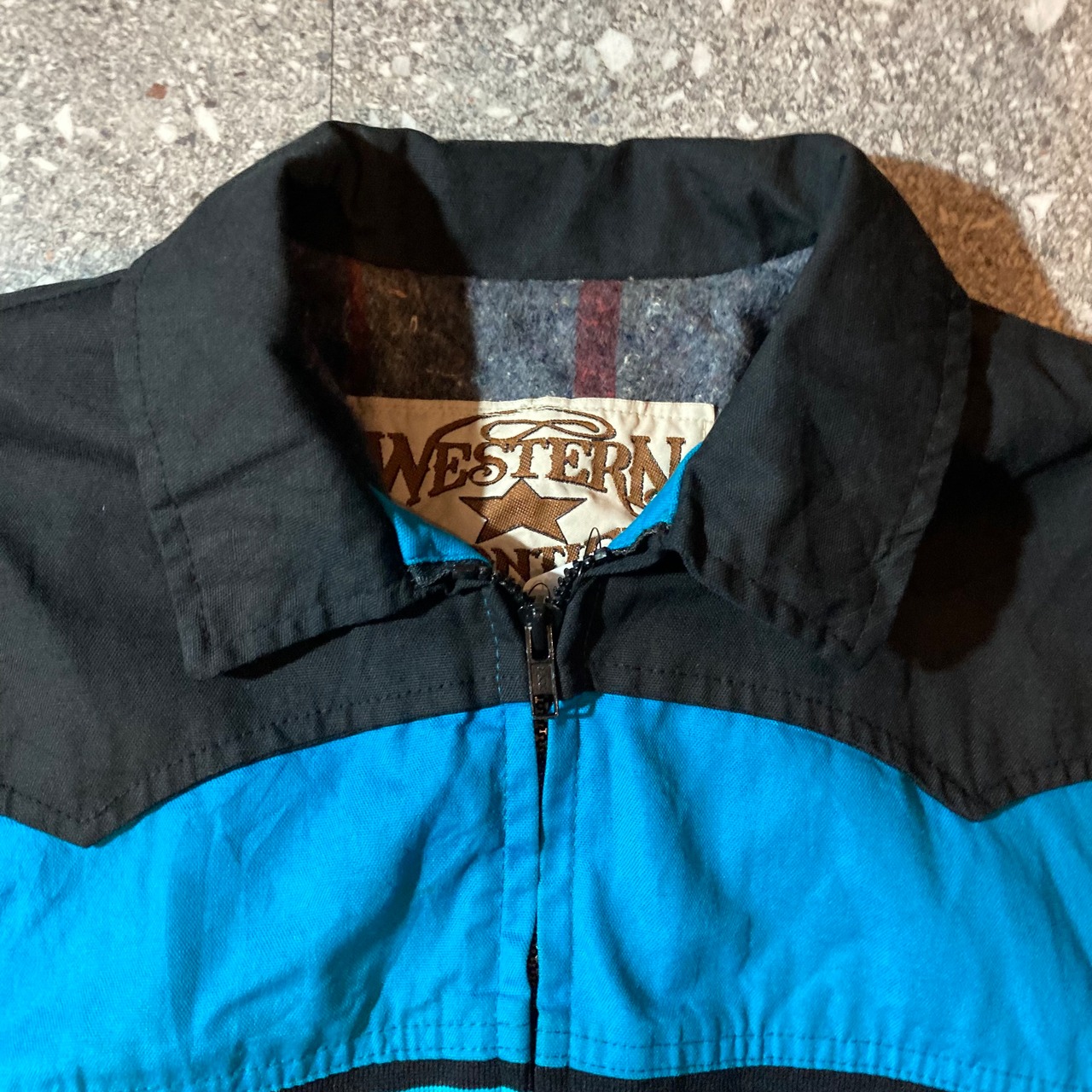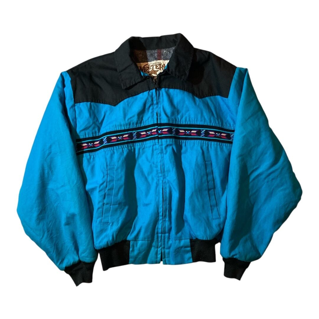 〜90s WESTERN FRONTIER native work jacket turquoise made in USA M size / ネイティブ柄 ワークジャケット 星タグ アメリカ製