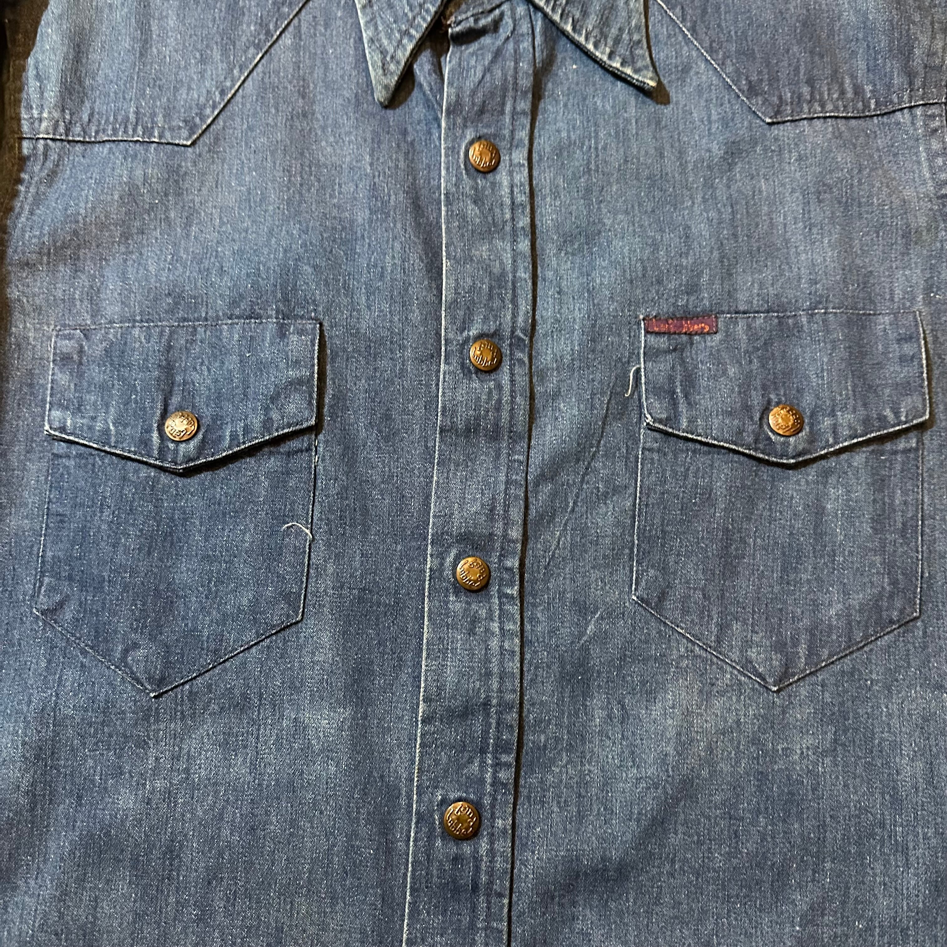 【E7】70s Grabber denim L/s shirt / 70年代 クロバー デニム長袖シャツ
