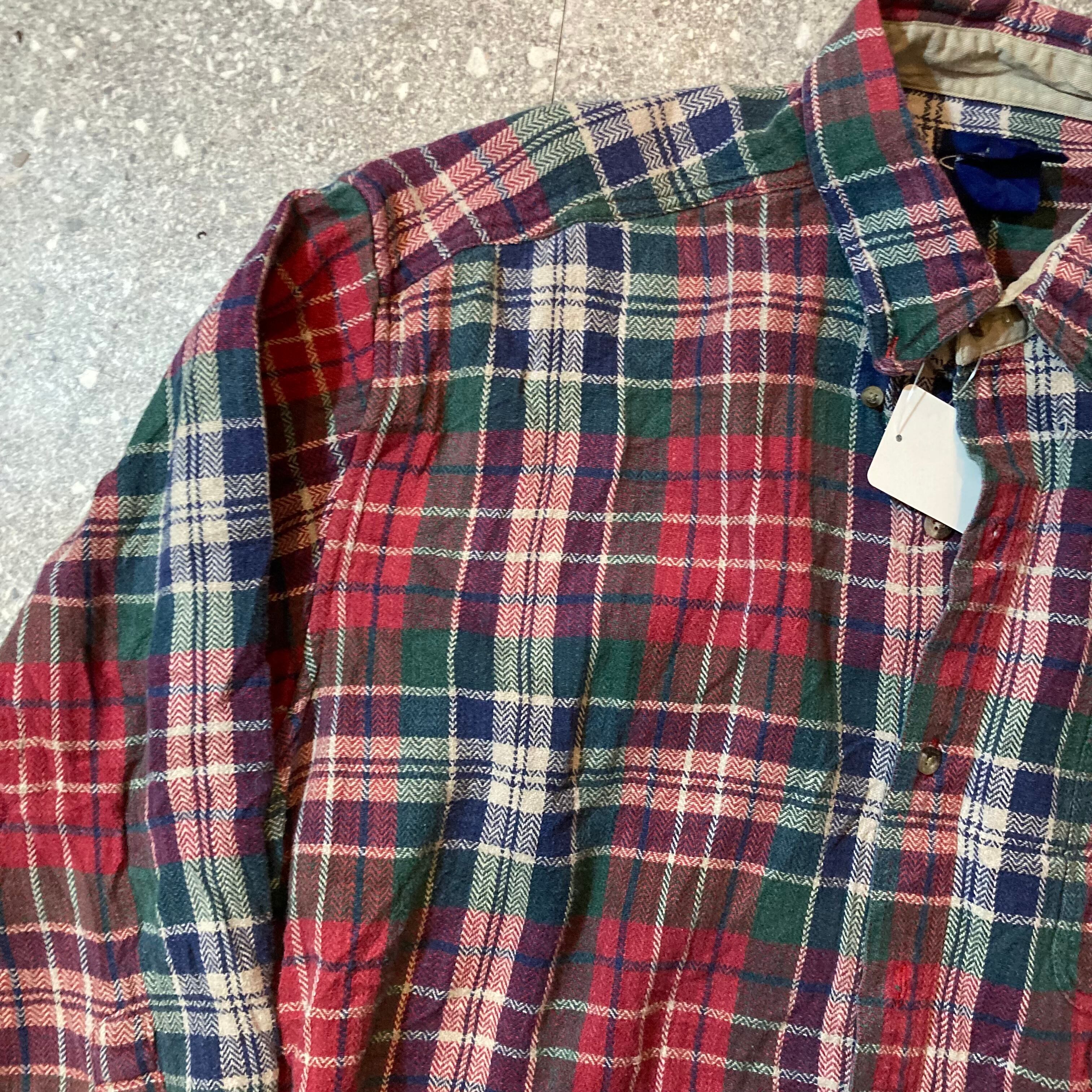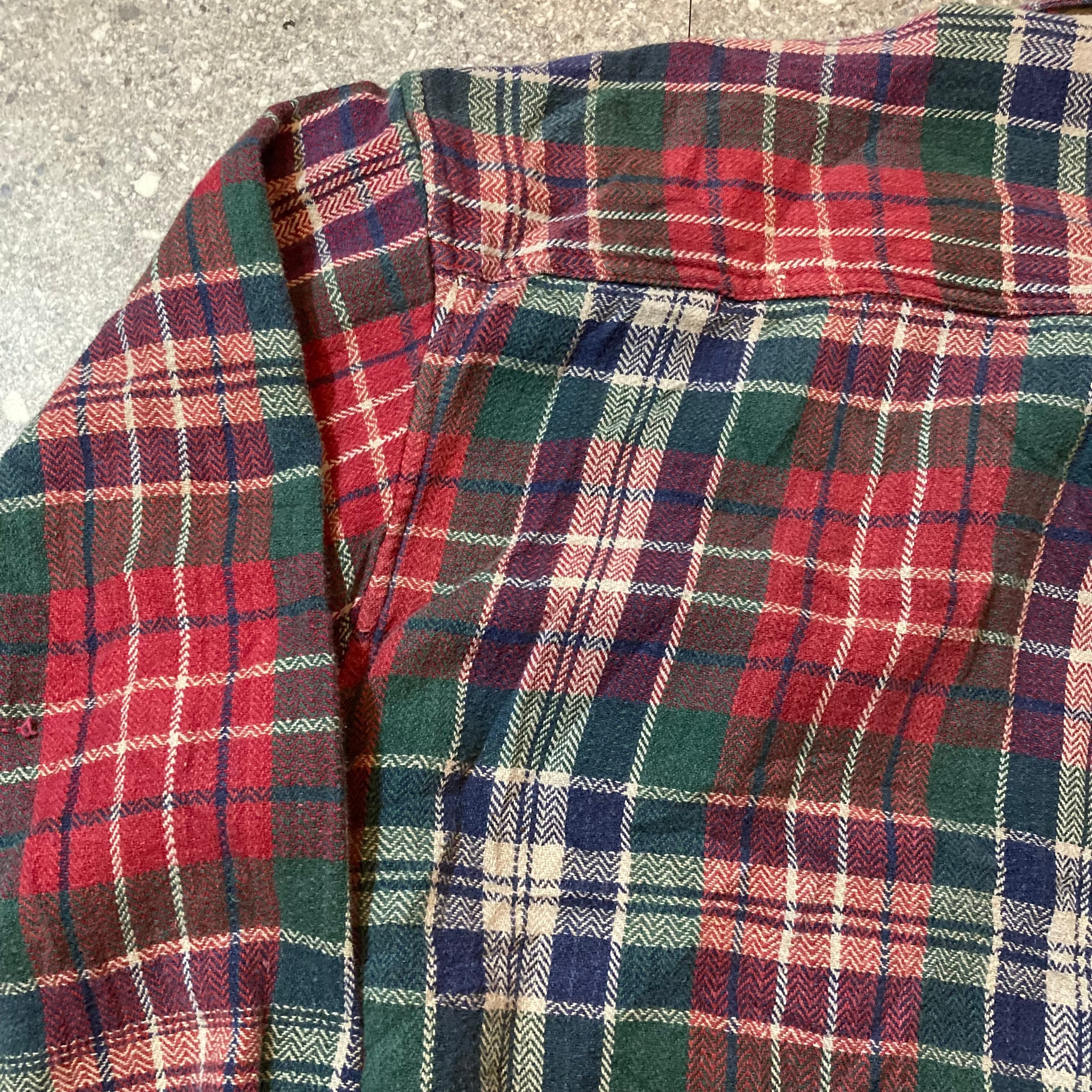 flannel shirt red herringbone check size XL/フランネルシャツ ヘリンボーンチェック レッド