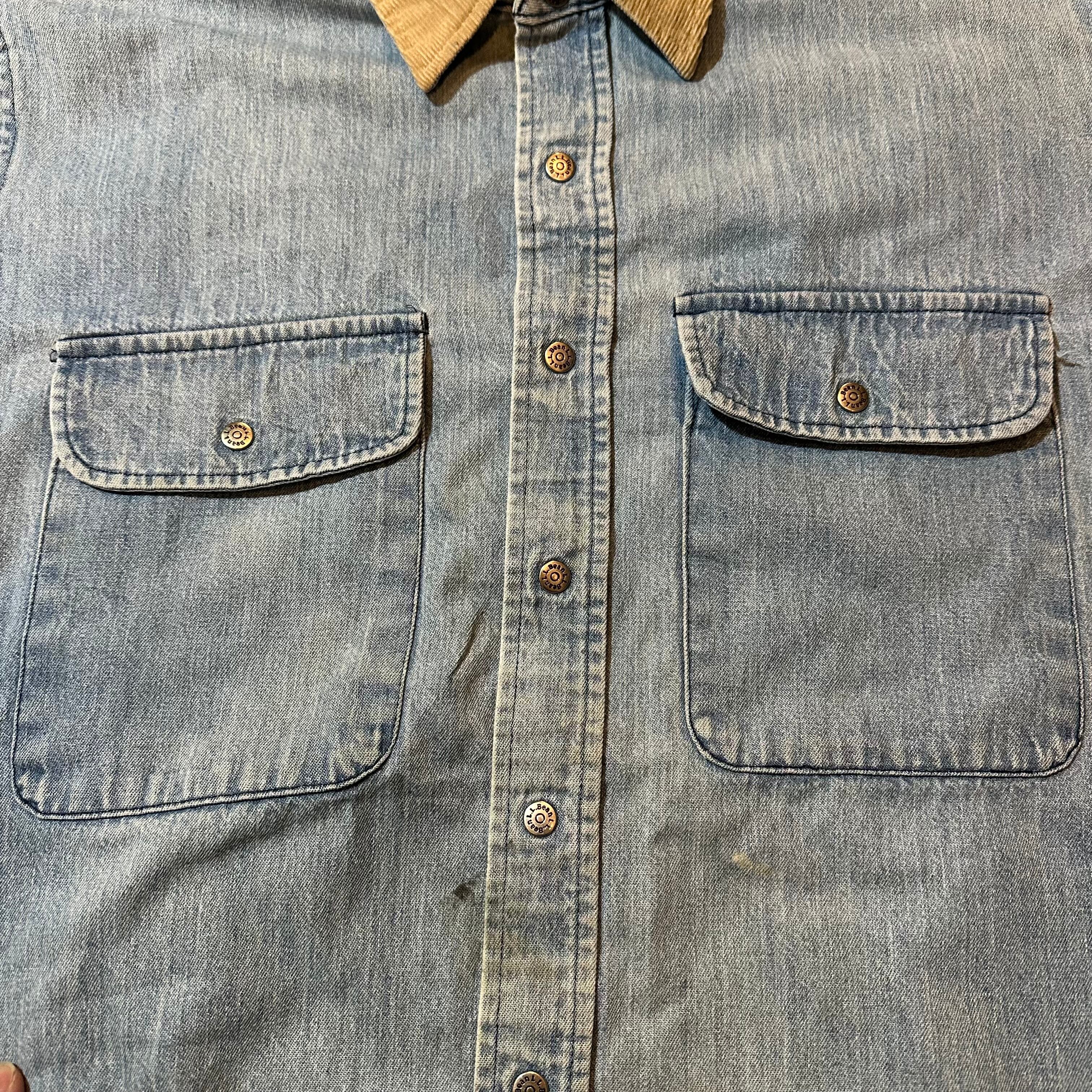 80s L.L.Bean Chambray neck Cody Roy L/s shirt / 80年代 エルエルビーン シャンブレー 襟コーディロイ 長袖シャツ