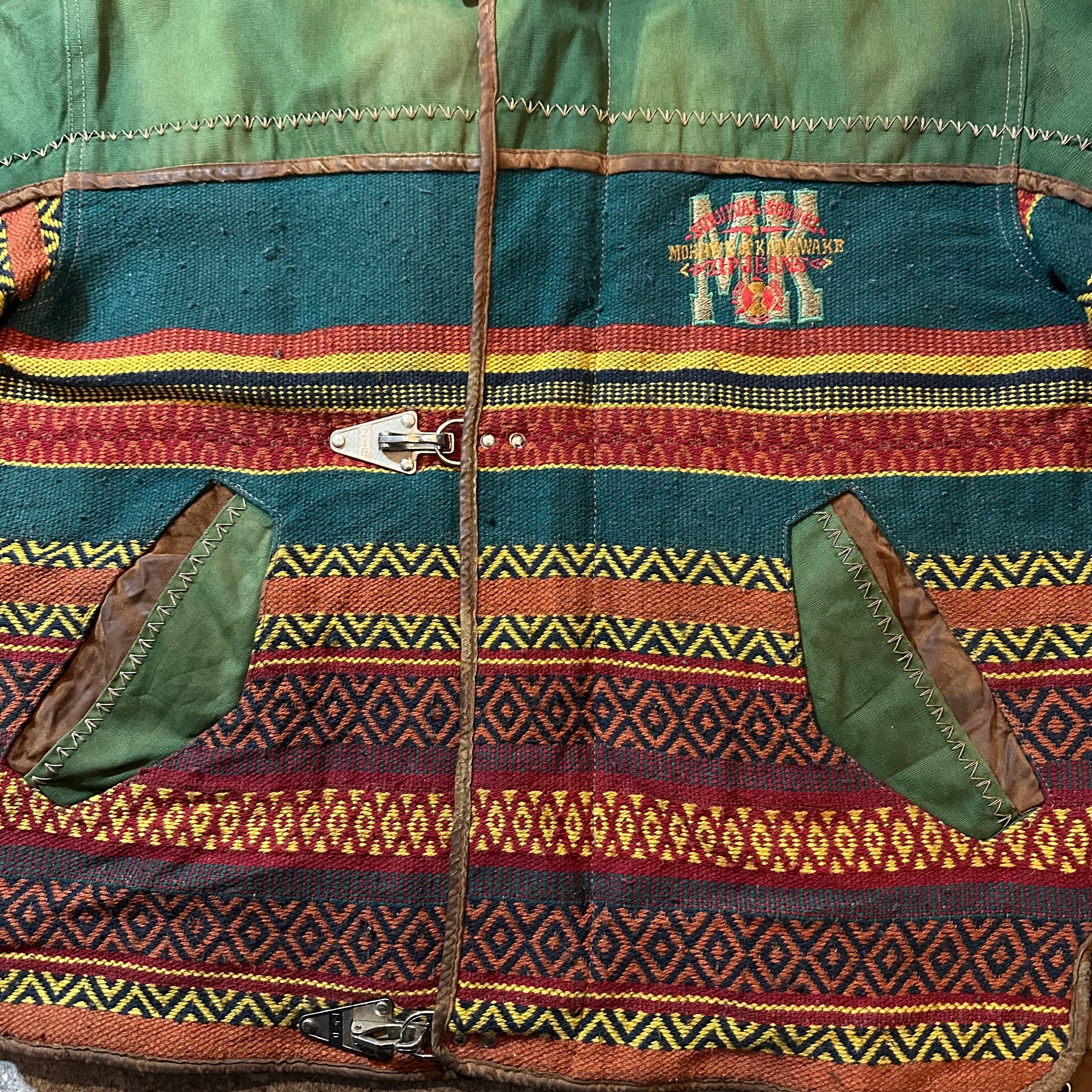 【E957】zip jeans &co. Fireman jacket Native pattern good fade / ジップジーンズ アンドコー ファイヤーマンジャケット ネイティブ柄 グッドフェード
