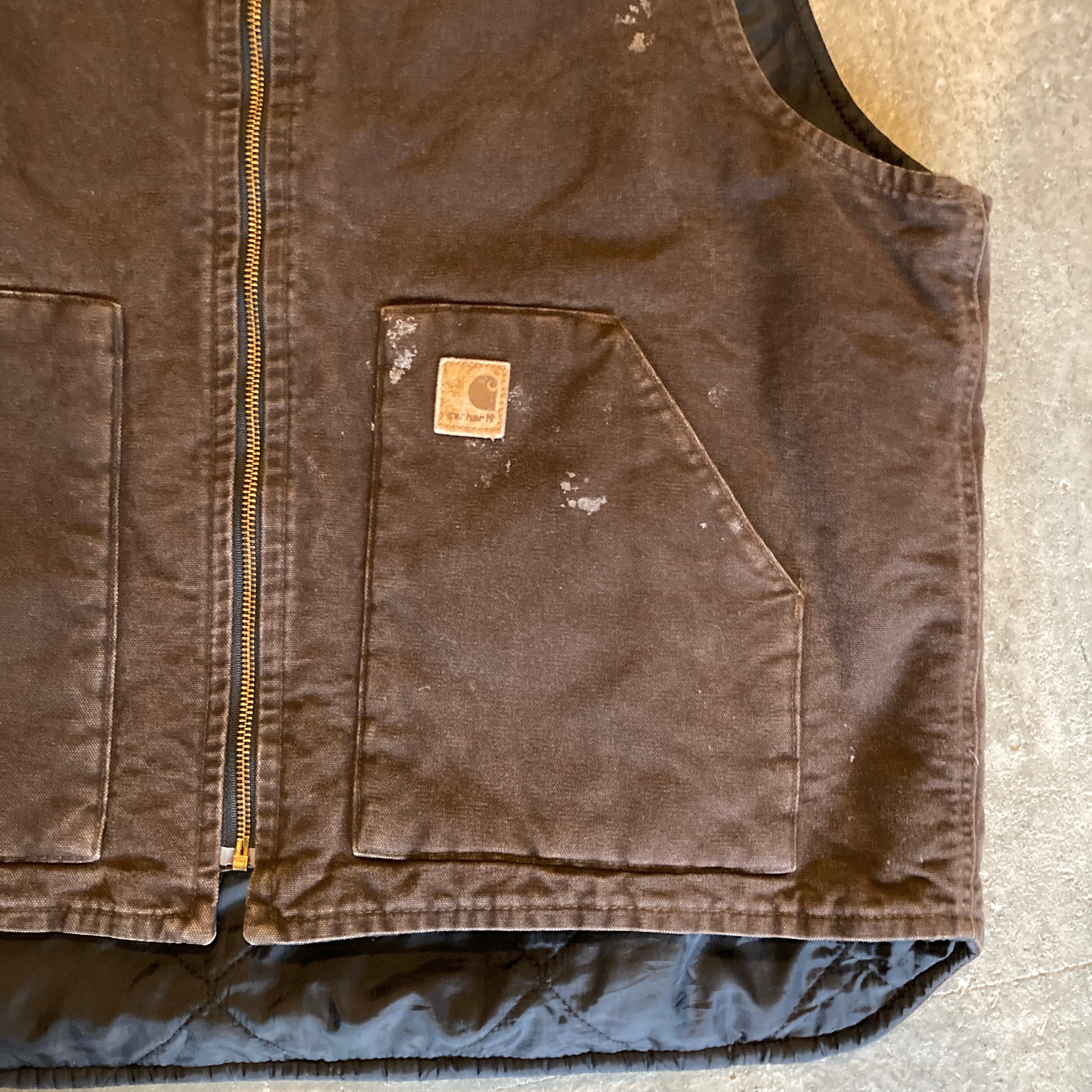 carhartt duck vest brown size XL / カーハート ダックベスト ブラウンフェード サイズXL ペンキ飛び