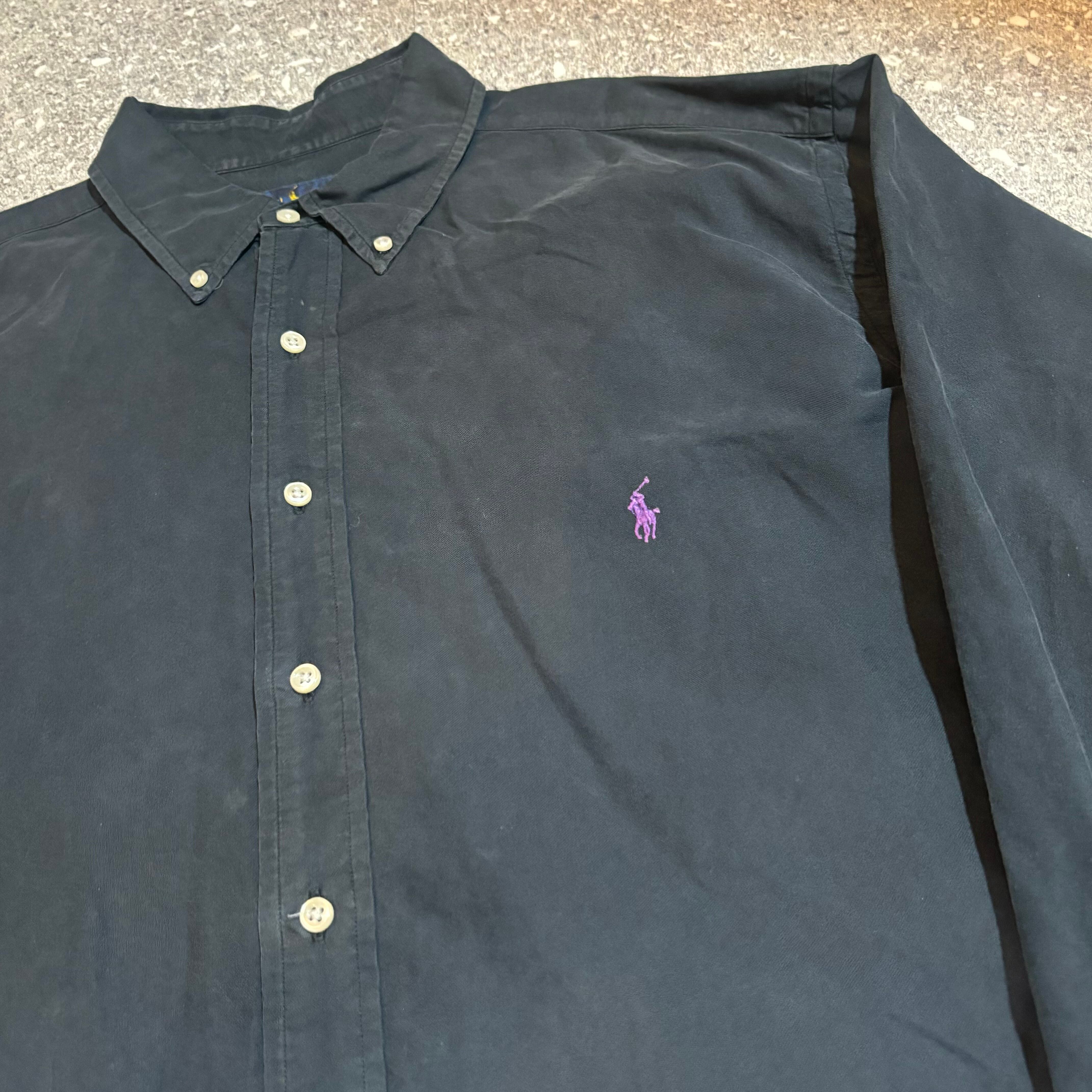 【B44】RalphLauren BLACK Button Down Long sleeve shirt/ ラルフローレン 黒 ボタンダウン 長袖シャツ
