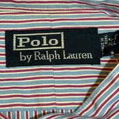 【B75】Polo by RalphLauren Stand collar stripe RED Long sleeve shirt/ ポロ・ラルフローレン スタンドカラー ストライプ 赤長袖シャツ