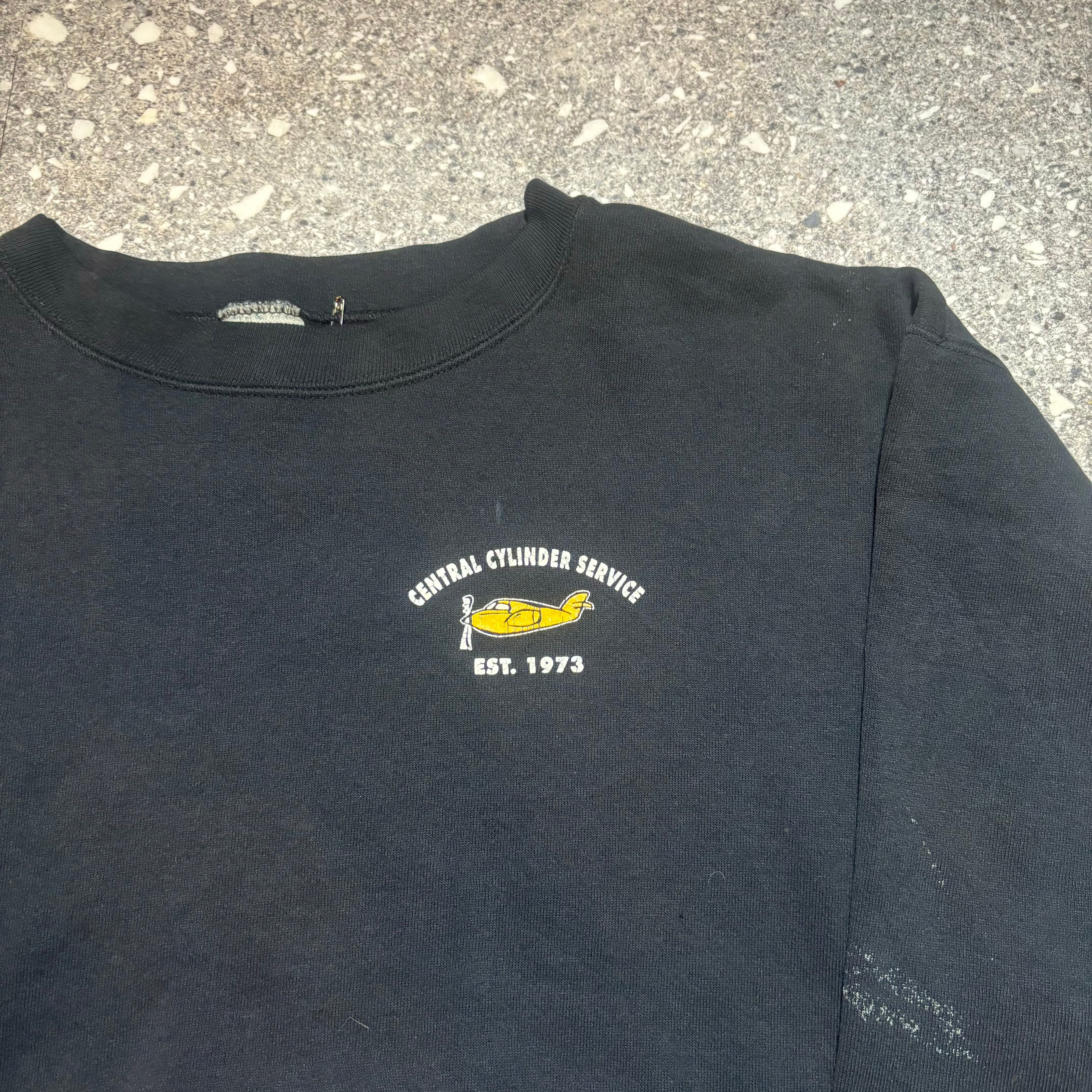 【B346】90s Alore made in USA CENTRAL CYLINDER SERVICE black Sweatshirts/1990年代 アローレ アメリカ製 セントラルシリンダーサービス 黒 スウェット