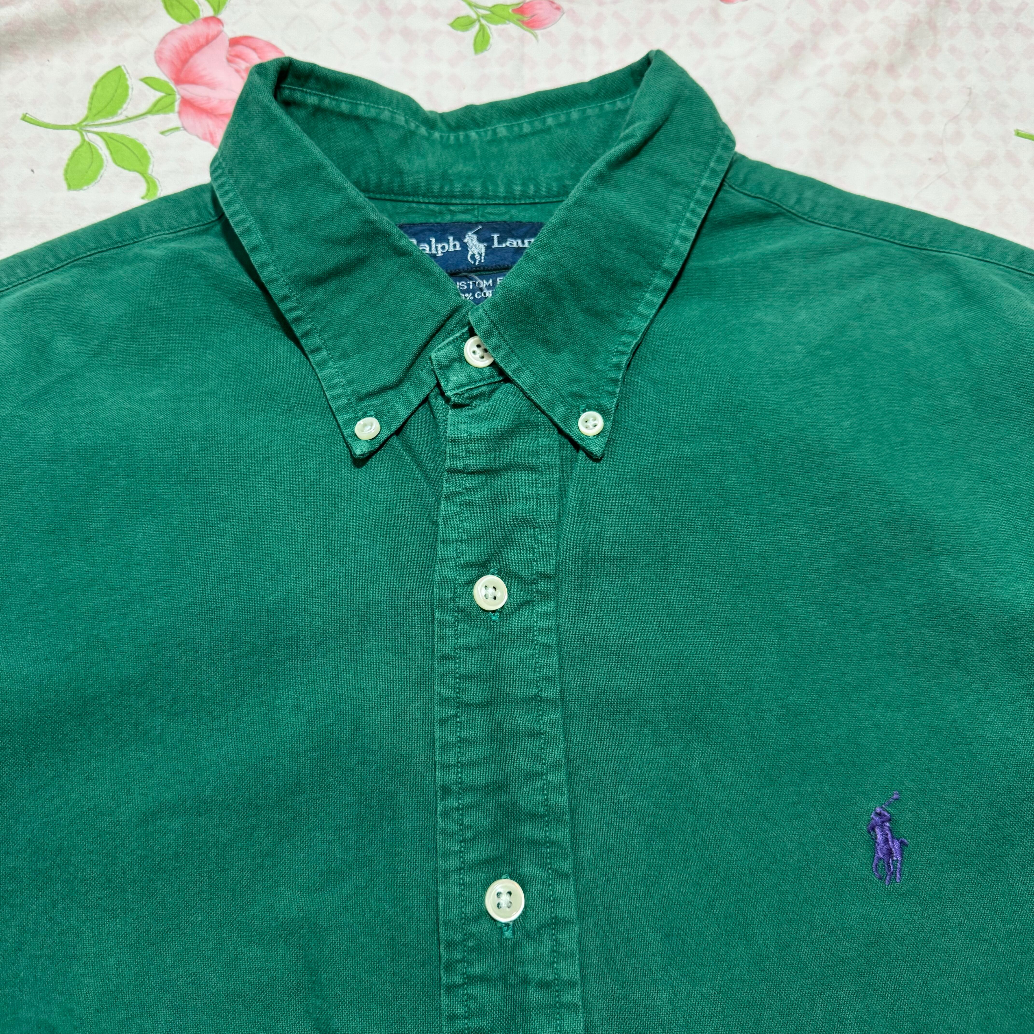 Polo by Ralph Lauren CUSTOM FIT prain long sleeve shirt green/ポロラルフローレン カスタムフィット 無地 長袖シャツ 緑