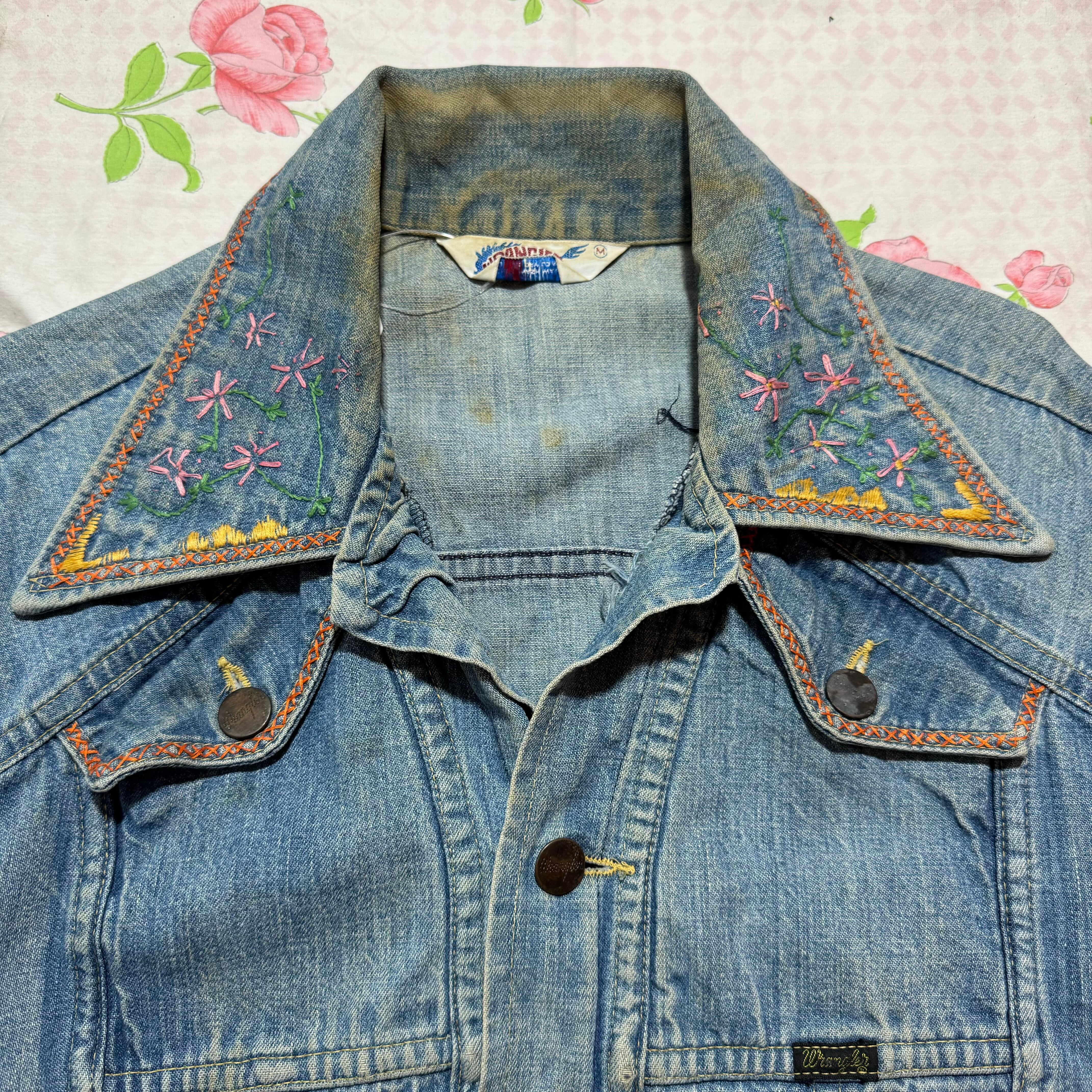 【C175】60s 70s Wrangler Denim Jacket Embroidery Used / 60年代 70年代 ラングラー デニムジャケット 刺繍 古着